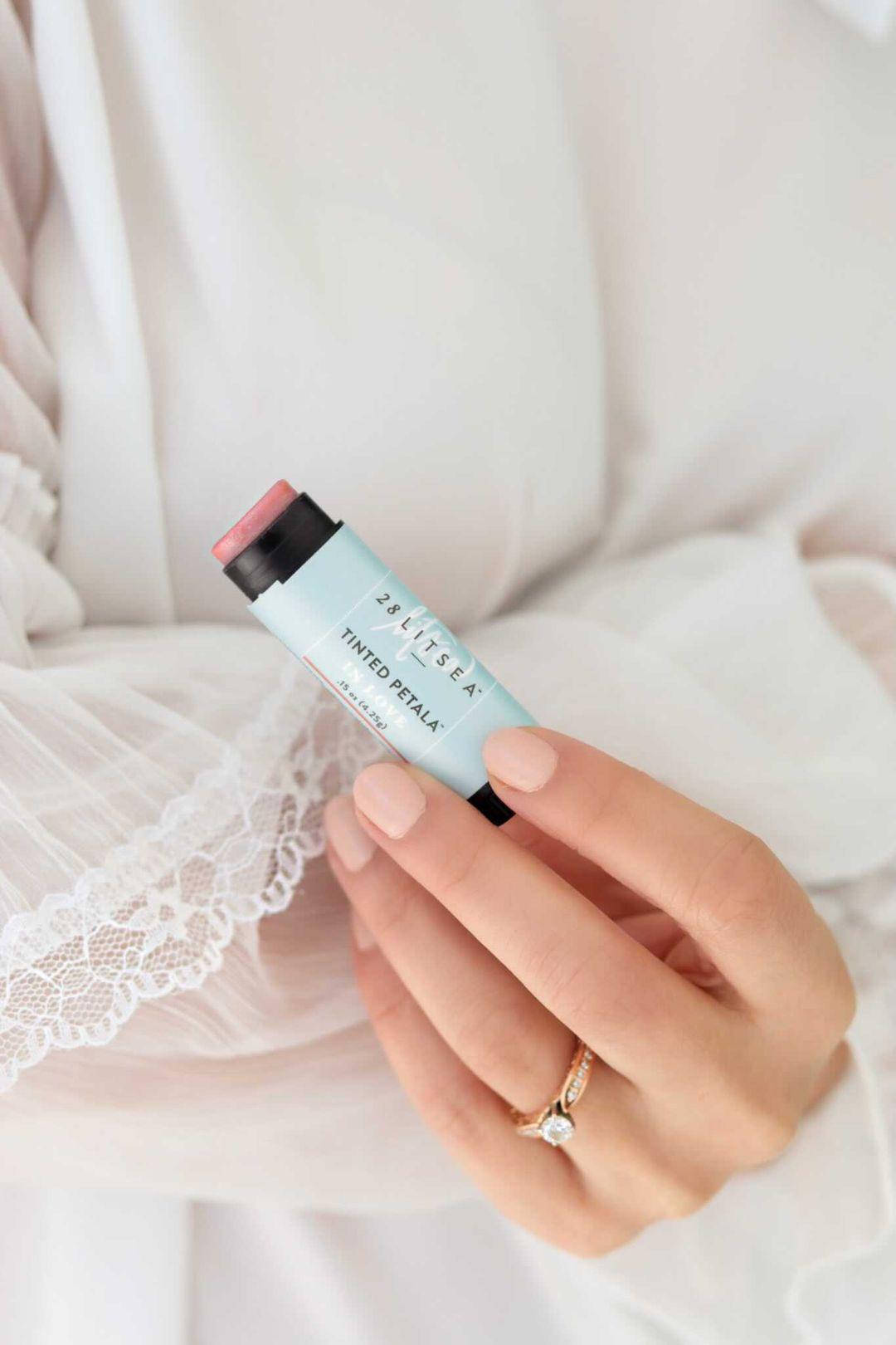 “And, I am never, ever without my 28 Litsea Tinted Petala Lip Balm in In Love. I literally buy it by the dozen so that I never run out. People ask me what I’m wearing whenever I have it on….”
